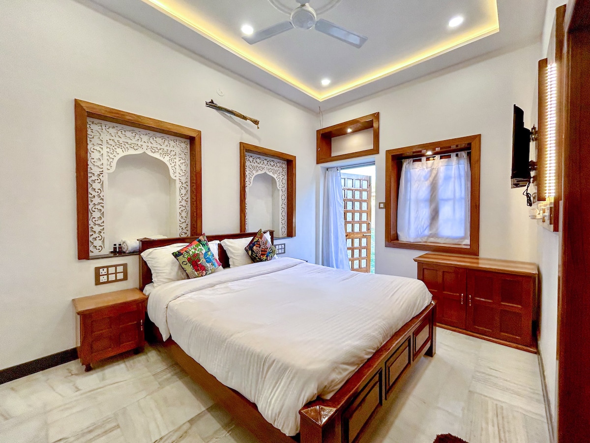 Umaid Villa er en boutique-hjemmeophold på landet, der er designet til at få dig til at føle dig hjemme. Vores hyggelige værelser sikrer komfort og varme, perfekt til en fredfyldt ferie. Træd udenfor, og du vil finde en grøn have, en rolig oase, hvor du kan drikke din morgente, slappe af med en bog og bare nyde roen. De fredelige omgivelser, væk fra byens travlhed, men tæt nok på Jaisalmers hovedattraktioner, gør det til et perfekt fristed for rejsende, der søger både afslapning og autentiske oplevelser.