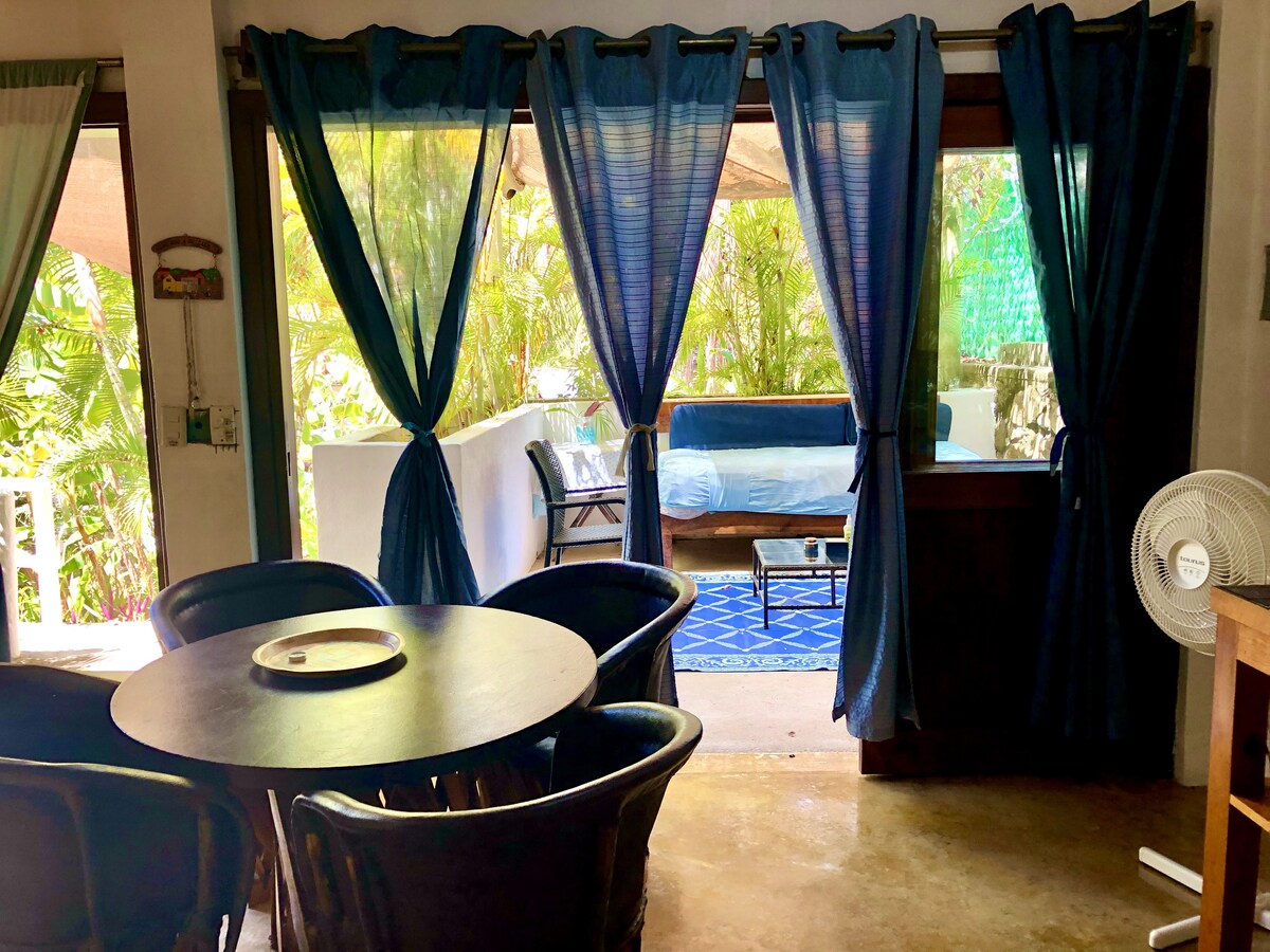 FIBEROPTISK INTERNET! 2 x HURTIGERE, og NY DYPPEBASSIN og VANDFALD. Høje lofter og store skydedøre af glas giver fuld beskyttelse mod vejret og støj, men giver en åben, rummelig følelse. Terrasse med udsigt til haven. 1 br/1 ba/køkken. Sovepladser 3. Stille, men tæt på handlingen. Gode restauranter, yoga og spektakulære vandreture nede ad gaden. Enkel, men komfortabel. Der er en anden udlejningsenhed ovenpå. Hver har sin egen separate, private indgang.