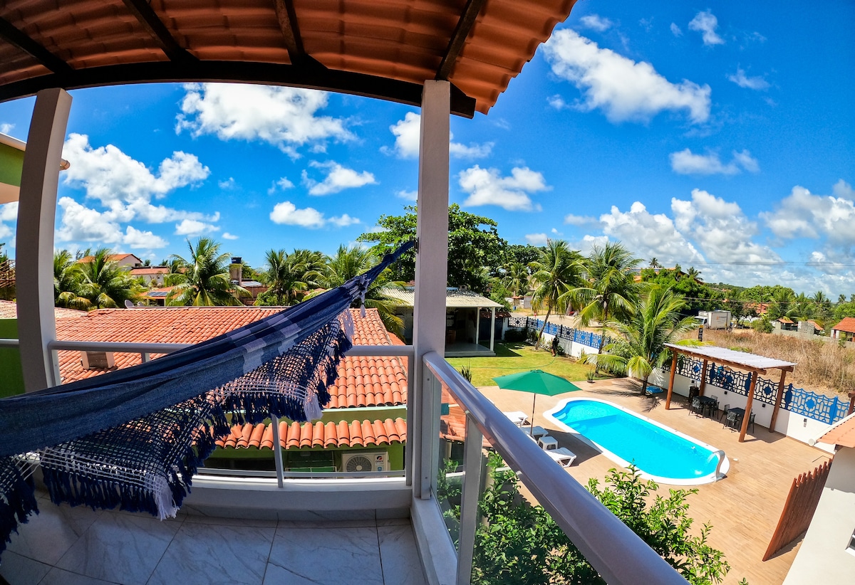 Casa Beira Mar - Hel (på stranden) 3 suiter med aircondition, på første sal med udsigt over havet. Spisestue og stue med 32" TV, WI FI i optisk fiber, afslappende balkon med hængekøje. Omkring 900 meter fra fiskerlandsbyen Barra Grande og 3 km fra centrum af Maragogi. Det roligste sted i området, foran de naturlige pools og få meter fra Caminho de Moisés og Antunes-stranden. Privat parkering, vi har dag- og natvagt. Komfort, bekvemmelighed og privatliv.