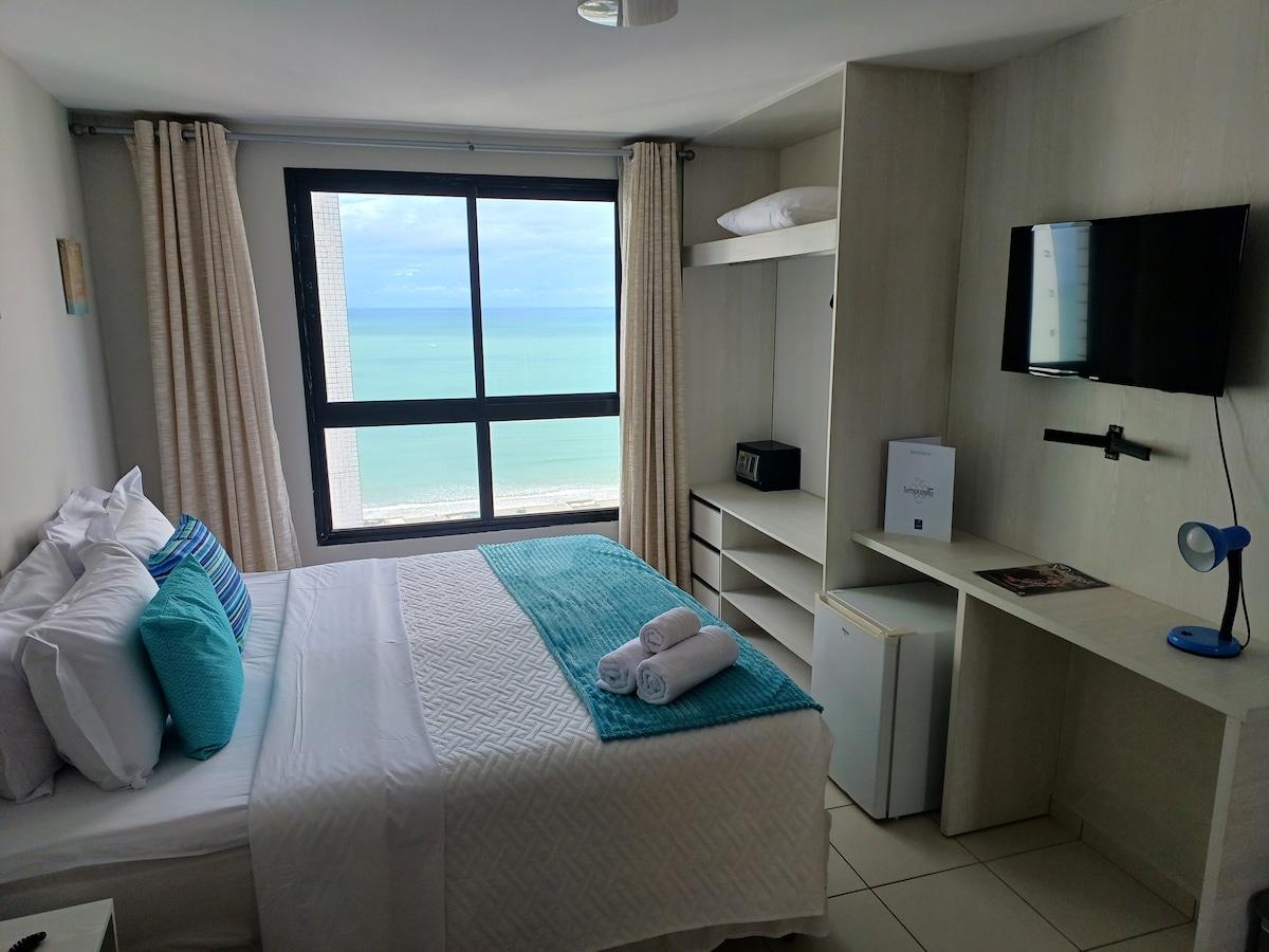 Acorde com uma vista espetacular para o mar no 6º andar do Paradise Flat! Apartamento completo e acolhedor, com cama king, ar-condicionado novo, Wi-Fi veloz, Smart TV e cozinha equipada. Ideal para descansar ou trabalhar com conforto. Piscina, sauna, limpeza inclusa e recepção 24h. Localização privilegiada, perto dos melhores restaurantes e comércios. Viva dias incríveis com praticidade, charme e segurança!