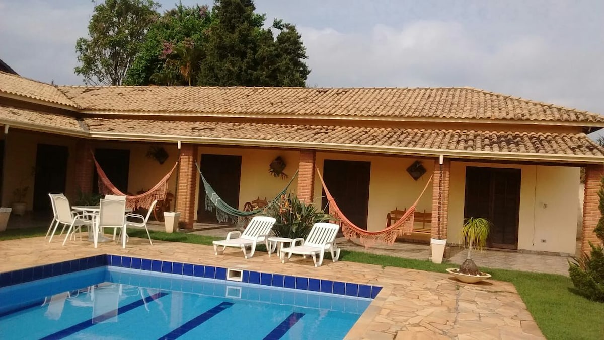 Chácara com casa aconchegante com lareira, piscina aquecida, brinquedos para crianças, espaço gourmet com frigobar, churrasqueira , forno a gás e fogão. Ar puro!! Bairro na beira da Rodovia D.Pedro) próximo de um dos maiores Zoológicos do Estado, ZOO PARQUE.. Local para família e/ou amigos curtirem paz e tranquilidade e despetar com o canto dos pássaros, Ideal pra quem quer contato com a natureza. Com bosque nativo no fundo do terreno onde tem uma casa na árvore.