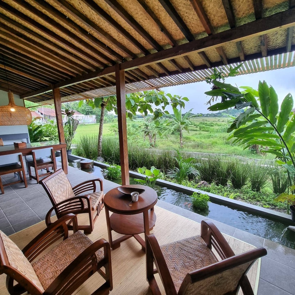 Champa Villa Et nyrenoveret fristed med 2 soveværelser beliggende på et 200 m² stort område med 160 m² privat plads, hvor en 7,5×4 m infinitypool åbner op mod rolige rismarker og blide landsbybriser. Kun få minutter fra byen, men alligevel omgivet af ro, med caféer og lokale spisesteder kun en kort gåtur væk. Moderne linjer møder varme, naturlige teksturer – komplet med fiberoptisk internet, et Netflix-klart tv og udvalgte lokale kaffe- og tesorter til afslappede, inspirerende morgener.