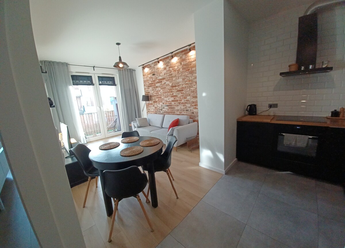 Komfortabel, fuldt udstyret lejlighed i en ny bygning. Stue med åbent køkken opdelt i spise- og opholdsområde. Soveværelset har en stor seng og et rummeligt garderobeskab. Der er også et garderobeskab som ekstra opbevaringsplads. Der er butikker, restauranter og caféer i området Udstyr: aircondition, kaffemaskine, kedel, strygejern, strygebræt, vaskemaskine Adgang fra Chopin Lufthavn 20 min med taxa 50 min med offentlig transport fra Modlin Lufthavn 50 minutter med taxa 120 min med offentlig transport