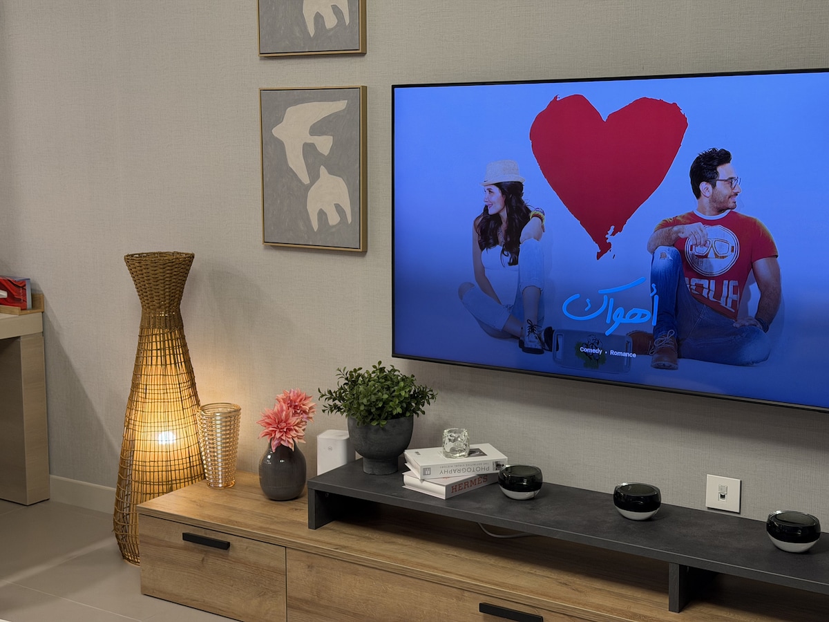 Slap af i den rolige og elegante atmosfære Moderne luksuslejlighed i Khobar Et stilfuldt ophold, der kombinerer komfort og luksus. Funktioner i lejligheden: • Soveværelse med komfortable madrasser • 75-tommers Smart TV-lounge • Netflix-abonnement og VIP-visning • Fuldt udstyret køkken • Self-entry • Rengør badeværelser med grundlæggende forsyninger Ideel beliggenhed: • 3 minutter fra Bahrain Bridge • 5 minutter fra Al Khobar Corniche • 10 minutter fra Al Rashed Mall • 15 minutter fra Haff Moon • Tæt på Ajdan Walkway Wook og Al-Daghir Island Licensnummer: 167.363
