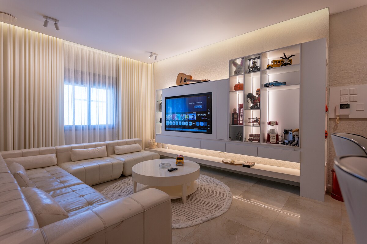 غرفتين نوم وصالة حديثة شاشة 75بوصة