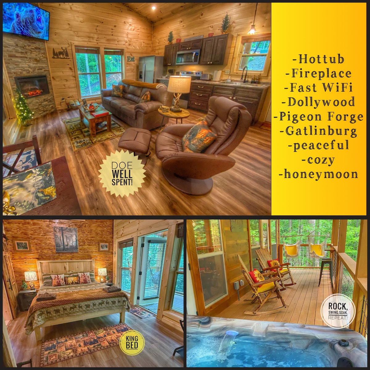 Resorthytte med boblebad • Tæt på Dollywood og sø
