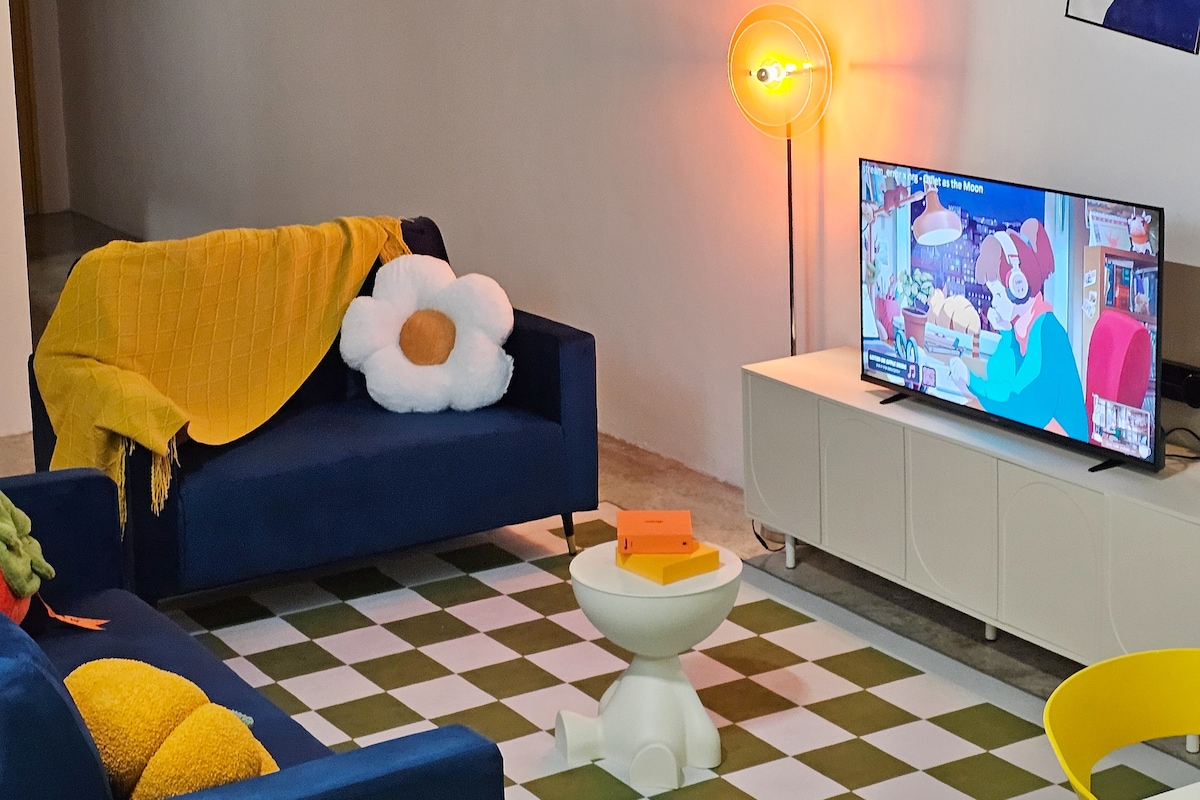 🌊HeyBlueee Homestay🌊 Vi håber, du får et behageligt ophold hos os! Hav det sjovt med hele familien på dette hyggelige sted med et strejf af boho-stil. 🐟 Mange af vores dekorationer er gør-det-selv-projekter af os, og vores favorit skal være de tre gør-det-selv vedhængslamper i stuen! Vi anbefaler på det kraftigste, at du tænder dem, mens du nyder filmen i stuen for en virkelig hyggelig oplevelse! Sørg for, at indretningen er godt under dit ophold, da det meste af indretningen er lavet af os💙;) Velkommen til vores hus! 😄✨