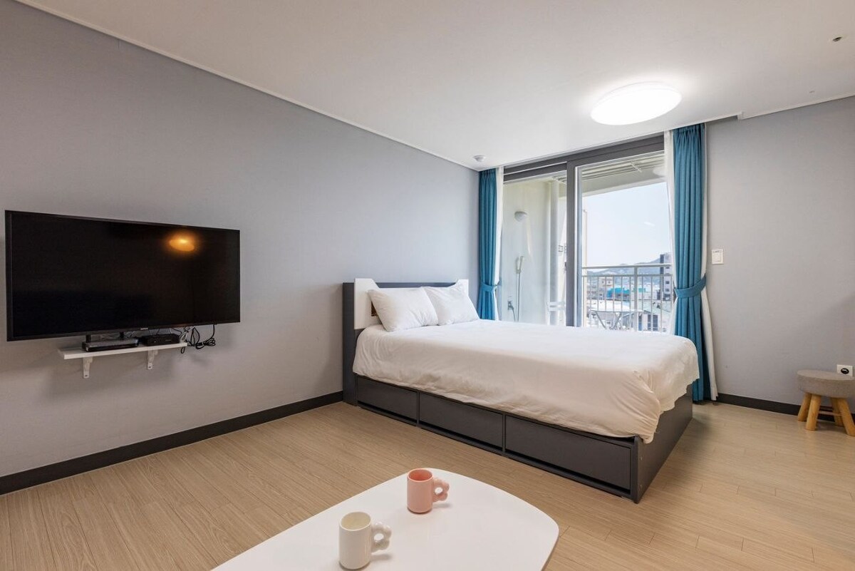 (Specialpris) #Ocean View Terrace/Marina Port/Yeocheon Station 10 minutter/1 minutters gang til supermarked/3-personers værelse (2 senge)/Moderne og pæn/Gratis parkering