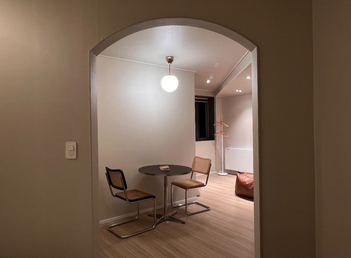 "Srug" er et rum med en behagelig hvile og gennemtænkte detaljer. Varm belysning og træindretning gør det hyggeligt, og du kan opleve en dybere søvn end derhjemme med luksuriøst sengetøj og madrasser i hotelstil. ✔ Slap af • Kingsize-seng + førsteklasses sengetøjssæt • Hyggeligt sovemiljø ✔ Sjov underholdning • Stråleprojektor • Forskellige OTT-tjenester såsom Netflix, Teabing osv. ✔ Rent badeværelse og faciliteter • Sæt med shampoo, balsam og bodyshampoo af høj kvalitet • Hårtørretumbler, toiletartikler Faciliteten ✔ er praktisk • Wi-fi tilbydes gratis • Lille køleskab (køleskab til rådighed), elkedel Instruktioner til✔ ind- og udtjekning • Indtjekning: efter kl. 18.00 • Udtjekning: Indtil kl. 14.00 næste dag • Gratis indtjekning med adgang til kontaktløs kiosk ✔ Parkeringsvejledning • Parkering for op til 5 biler foran huset • Hvis der ikke er plads, ligger den gratis 'Imdong Ssamji Public Parking Lot' 3-5 minutters gang væk.
