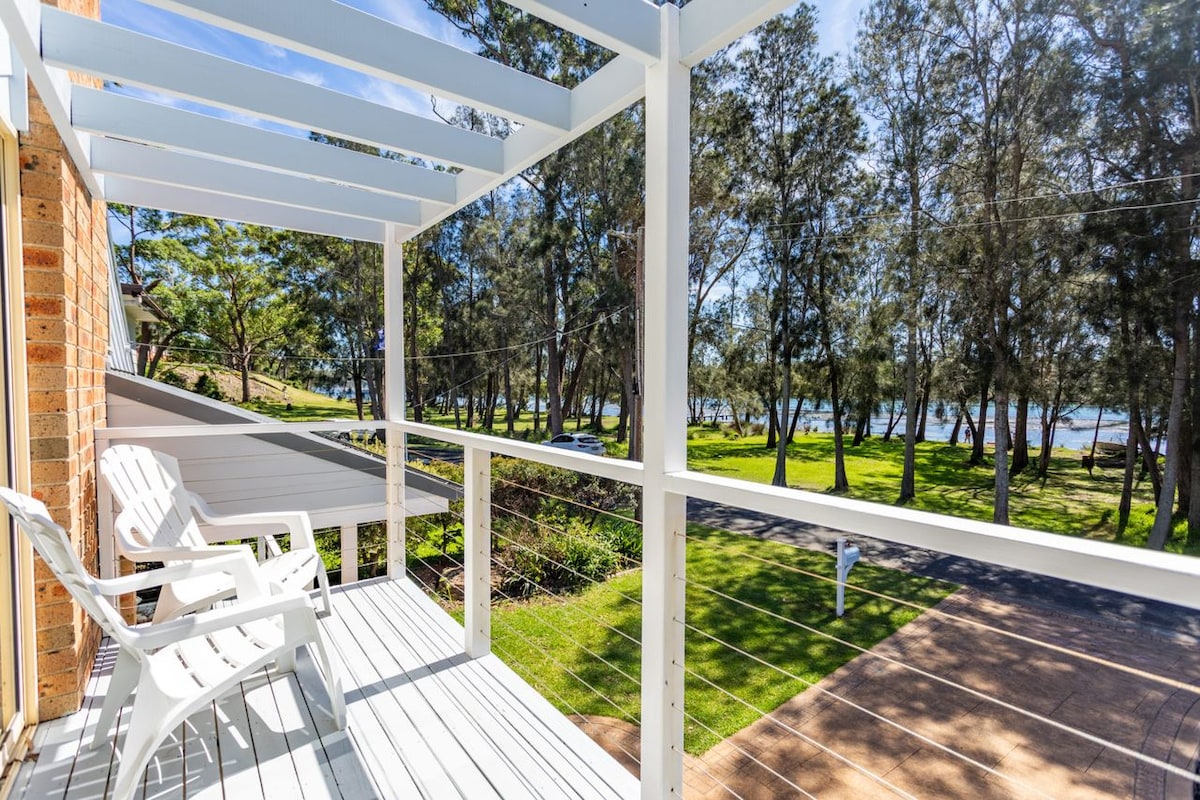 Dette sted ligger ved St Georges Basin og er perfekt til kajaksejlads, paddleboarding, sejlads og fiskeri. Nyd fred og naturskønne udsigter langs den træbeklædte Basin Walk. Denne dejlige bolig er stilfuld og kæledyrsvenlig og har et hovedhus samt en separat studiolejlighed med eget soveværelse og badeværelse, der tilbyder ekstra plads og privatliv. Med direkte adgang til vandet vil du blive forkælet med en betagende udsigt over spektakulære solopgange og solnedgange over bassinet.