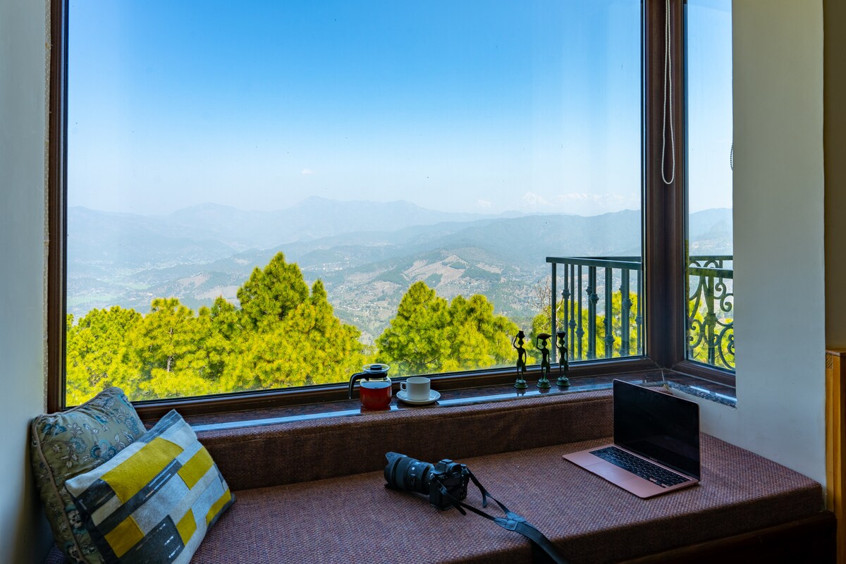 Intimitet i et A-hus, solopgang på balkonen, stille hjørner. Lavet til par, der elsker at tage det roligt om morgenen. Arbejdsklar, strømklar, telefon valgfri. Raya føles hyggelig og tæt. Balkonen er helten her, te og det første lys hver dag. Enkle interiører, varmt træ og en klar udsigt sætter tonen. Wi-fi er hurtig, der er backup af strømmen, og der er et ryddeligt arbejdsområde, hvis du har brug for det. Køretiden fra Delhi er ni til ti timer. Kathgodam er den nærmeste jernbane. Gratis parkering. Bedst til par og jubilæer.