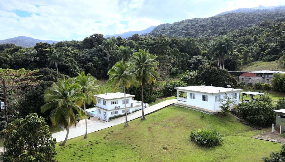 Nyd et uforglemmeligt ophold i vores ejendom på 2 private hektar, omgivet af fred og natur. Huset har en privat pool, åbne udendørsområder til afslapning og masser af plads til at hygge sig med familie eller venner. Oplev Puerto Ricos magi i denne hyggelige bolig, der ligger for foden af den majestætiske El Yunque. Vågn op til lyden af fuglesang og naturens blide hvisken, omgivet af fredfyldte og private omgivelser.