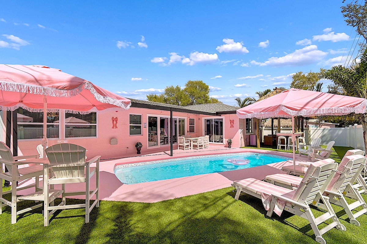 Velkommen til din ultimative ferie ved vandet, hvor flamingo-flair møder kølig havluft. 🦩💦 Nyd livlige vibes, udsigt over vandet og solrige dage fyldt med sjov. Dette paradis er kun få skridt fra John's Pass – en livlig fiskerby med restauranter, butikker og barer – og er din perfekte udflugt. En privat bådebro er tilgængelig; DM for priser. Tag dine venner med, pak smilene, og skab minder, der er lige så lyse som flamingoerne!