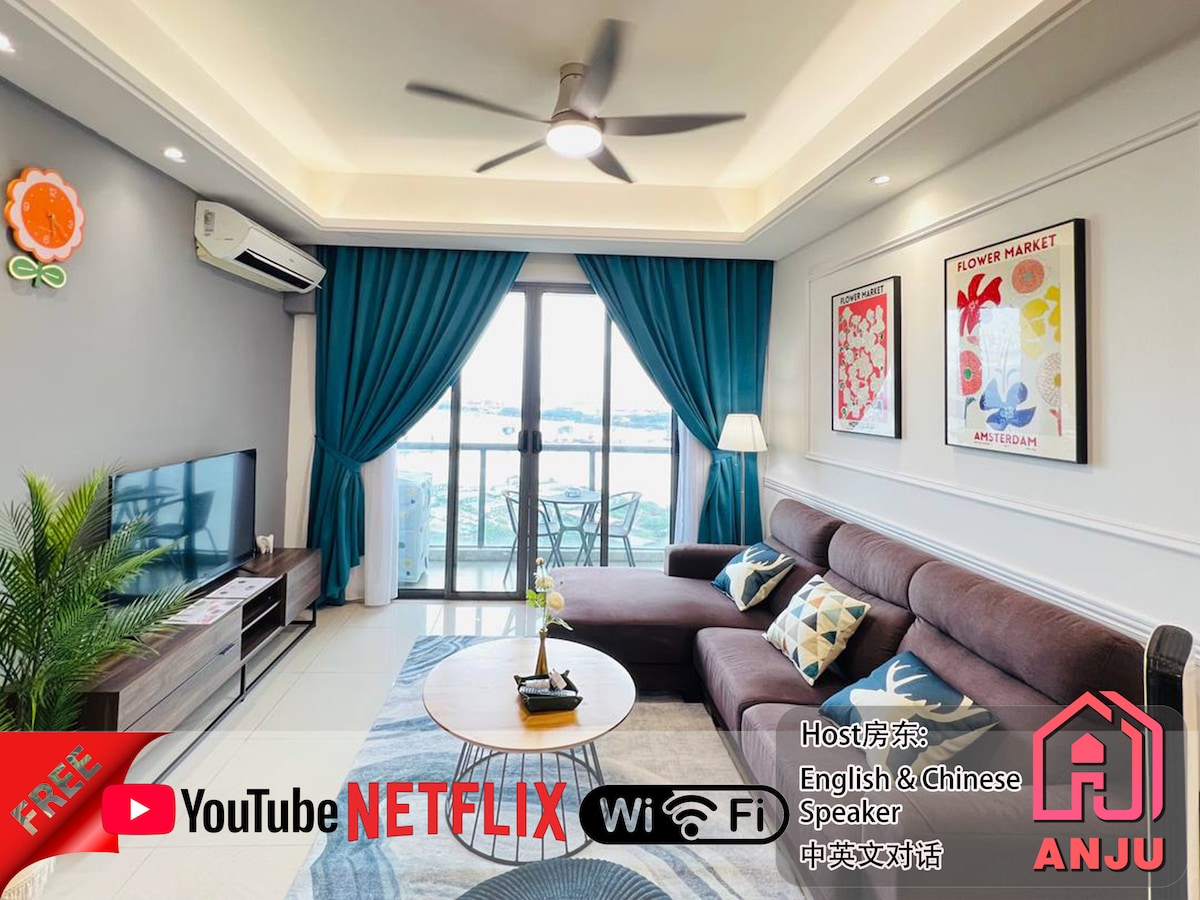 Ren, komfortabel og rummelig bolig med 2 soveværelser på Tritower Apartment CIQ JB med queensize-dobbeltseng og fantastisk udsigt over Johor Bahru City Town! Nyd en udsigt over gulvet på og privat balkon her! Herfra kan du få en betagende udsigt over den omkringliggende region og også Sunset!! Omgivet af indkøbscenter og et bredt udvalg af lokal velsmagende mad. - 5 minutters gang fra JB CIQ - 10 minutters gang fra City Square/JBCC