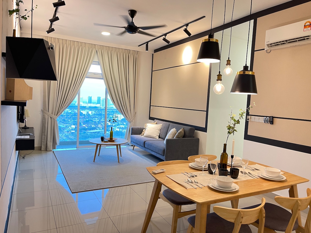 Dette er en specialdesignet lejlighedsstudie beliggende i KSL City Mall. Du vil nyde havudsigt, pooludsigt og byudsigt fra balkonen. Gæsterne kan nyde al den lokale malaysiske mad i KSL Mall nedenunder. Du kan bruge infinity-poolen og fitnessrummet i lejligheden. Hvad venter du på? Book her for et drømmeophold i Johor Bahru!