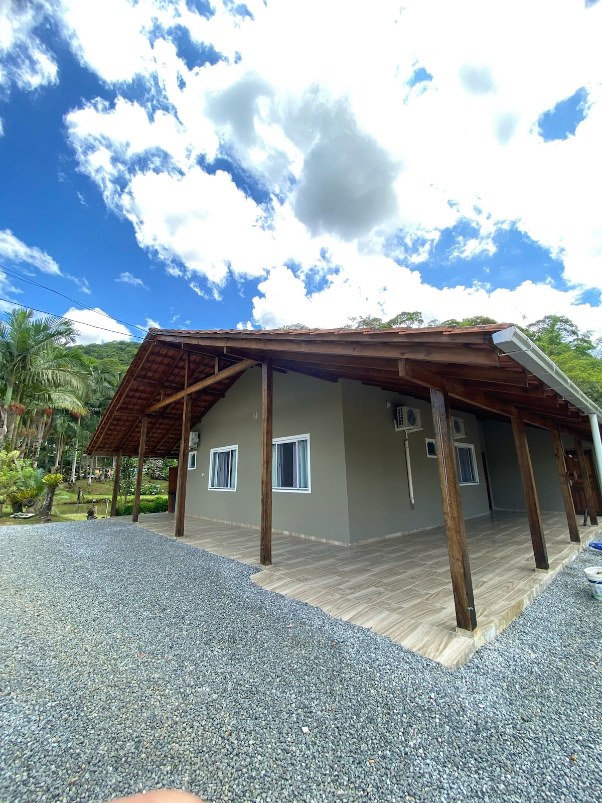 Vores landsted er udelukkende til dig, vores gæst. Med integrerede miljøer, højt til loftet, udstyret køkken og store blå vinduer med udsigt over grønne områder (fugle og kapuchinaber). Udendørsområdet har en grill og bålplads med udsigt over skoven, hvor du kan nyde unikke øjeblikke med familien eller som par. Beliggende i den charmerende Caminhos Dona Francisca-region. Tæt på Rio da Prata, 20 minutter fra Joinville, 1 time og 50 minutter fra Curitiba – et naturligt fristed med let adgang og bjerge.