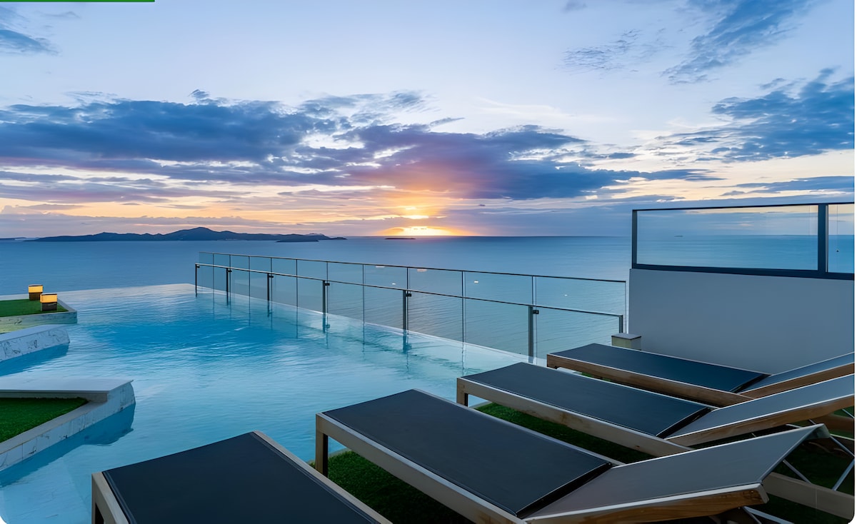 Gyldne solnedgange i Pattaya: strand, pool, balkon, fitnessrum