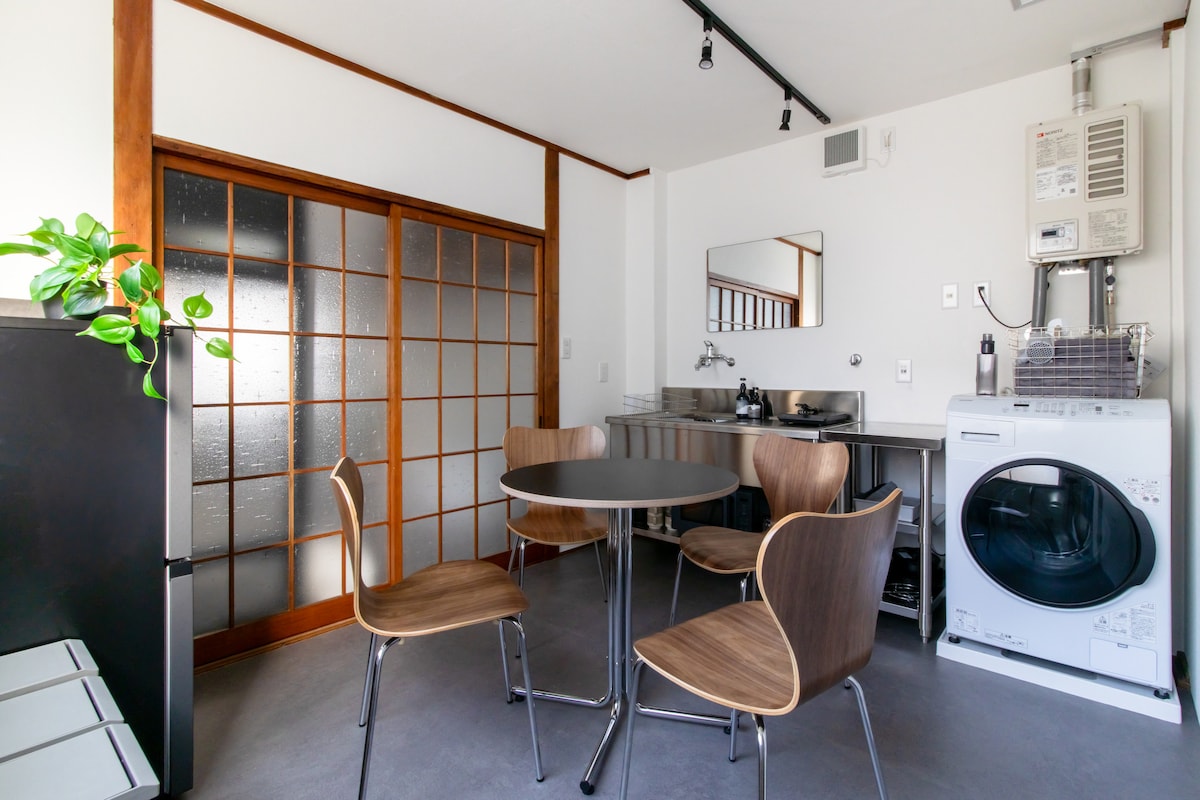 En hyggelig bolig omgivet af natur, der blander japanske og vestlige stilarter. Slap af i et roligt rum med et teværelse, en have og en træveranda. Nyd et afslappende bad i det duftende Hinoki-bad. Den rummelige indretning passer til familier og grupper. Køkkenbordet indbyder til samtale, mens man laver mad. Tatami-varme, sæsonbestemt udsigt og naturinspireret design skaber en nostalgisk, fredfyldt følelse. Gratis parkering til 2 biler og nem adgang til Tenjin, Hakata og byens seværdigheder. Vi glæder os til at byde dig velkommen.