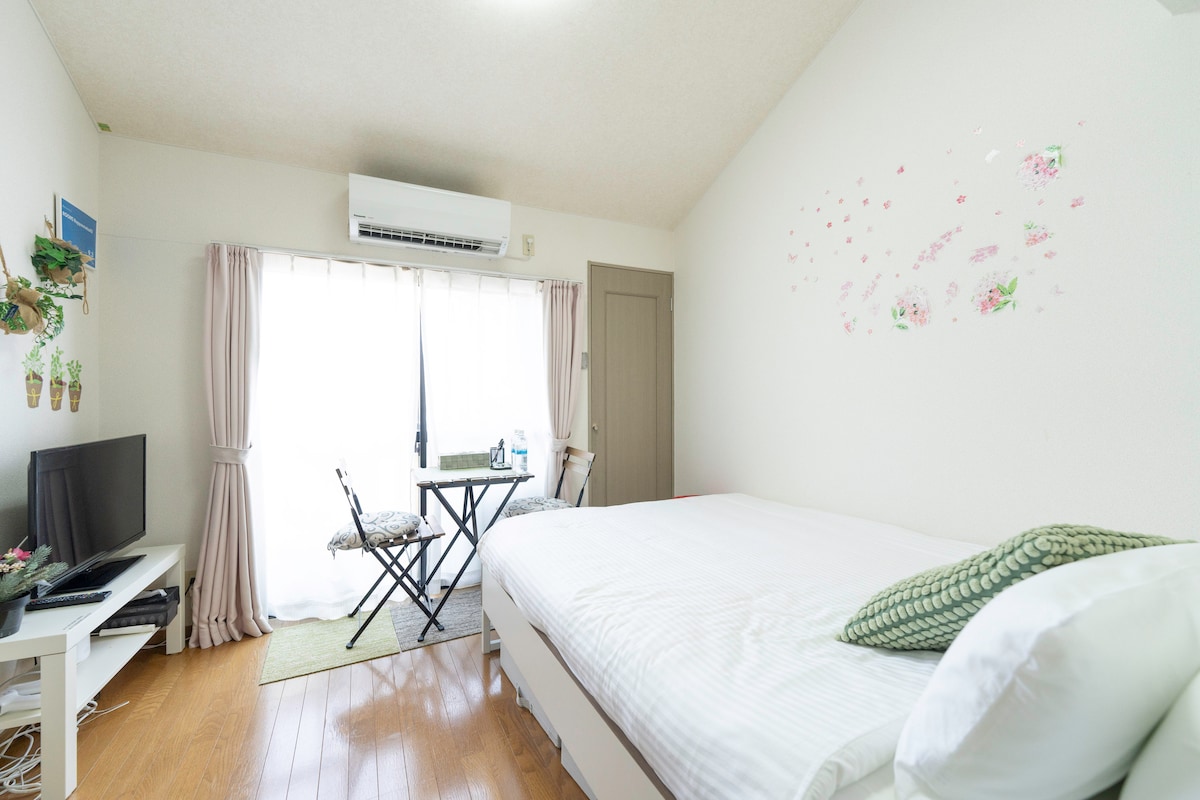 En ren og hyggelig etværelses lejlighed til en kvinde, bekvemt beliggende kun 1 minut fra metroen og busstoppestedet. Der er døgnåbne butikker i nærheden. Værelset har køkkenredskaber, en rismaskine og en queensize-dobbeltseng fra Sealy, så du kan sove godt. Der er også 3 vaskemaskiner/tørretumblere i bygningen. Det maksimale ophold er 180 dage om året, så book tidligt. Dette nulstilles hver april. Opdateret prissætning for kvalitetsvedligeholdelse: fra 5.500 JPY/nat i 2026, med mulige små stigninger på grund af Japans inflation.