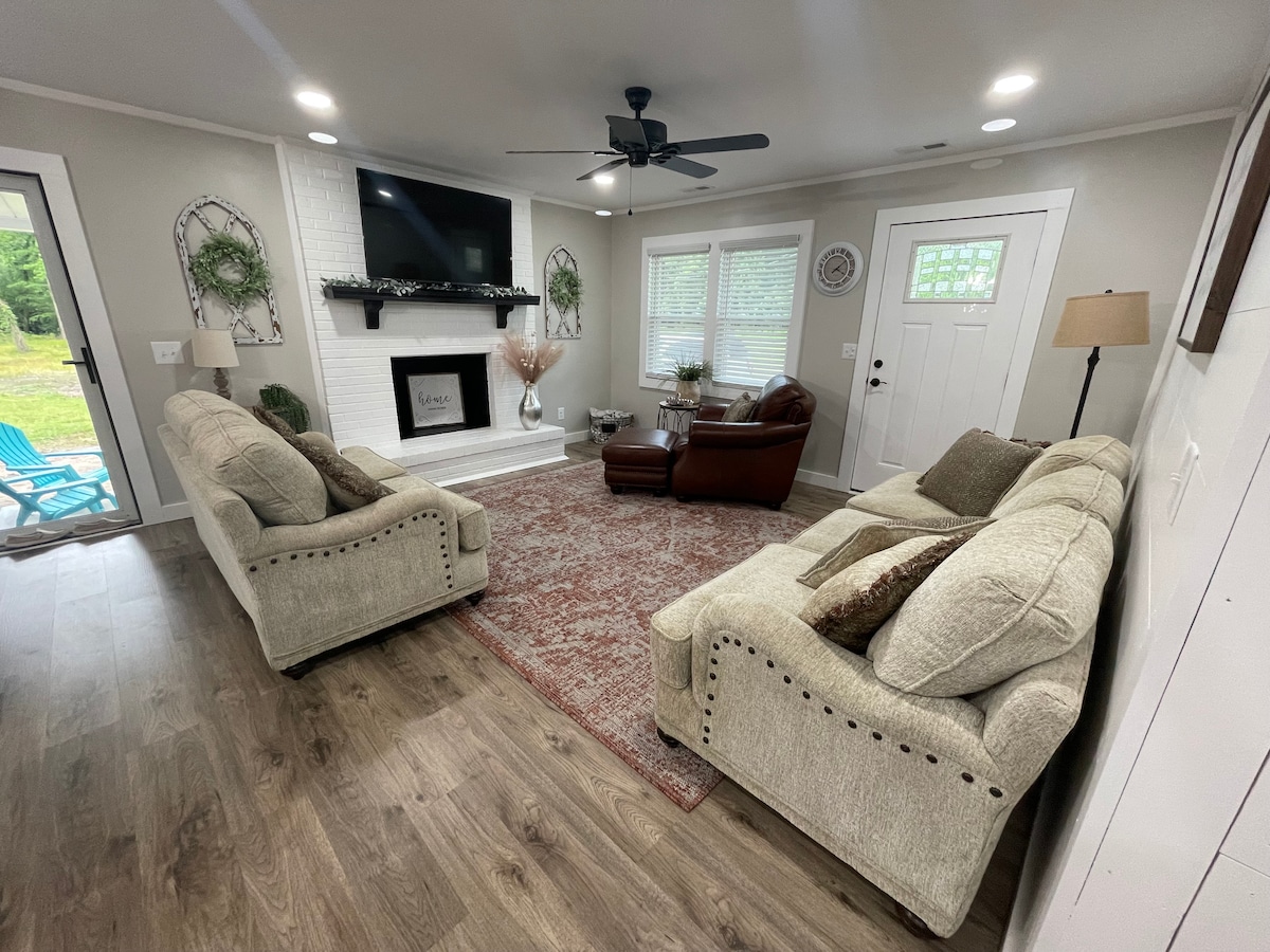 Adorable 1953 renovated cottage located in the heart of New Bern. Walk to grocery store. 1.4 miles to Twin Rivers Mall and Wal Mart. Two miles to historic downtown and half mile to Craven Regional Medical Center. Restaurants nearby. Walkable neighborhood. The living space has new smart TV, WiFi. and is newly furnished. The house has two bedrooms, two twins and one queen with new bedding and new mattresses. Bathroom tub with shower and washer and dryer. Kitchen with granite counters and island. Kitchen seats four with eat in table. Keurig one cup coffee, breakfast snacks, coffee, bottled water complimentary. All new appliances. Everything you should need for comfortable stay provided. Fenced back yard with deck Driveway parking for two vehicles. Check in is at 3:00. Check out 11:00 am.