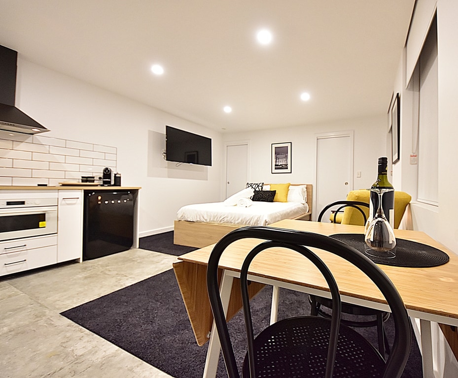 En selvstændig atelierlejlighed, der lige er blevet totalrenoveret. Studiet ligger tæt på CBD og er velegnet til par eller enlige rejsende og er ideel indk indkvartering, uanset om du besøger forretning eller fritid. Det er en god base, hvorfra man kan udforske Launceston og dens omgivelser. Studiet har et kompakt, veludstyret køkken. Stilfulde skandinaviske møbler giver komfort, når det er tid til at slappe af. Mælk, brød og syltetøj til morgenmad.