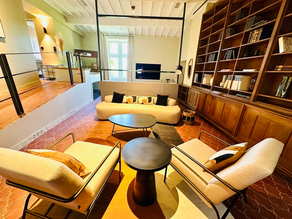 "Albert & Célestine" byder dig velkommen til hjertet af Provence ! Velkommen til Lourmarin! Beliggende på øverste etage i et gammelt herregårdshus, der er gennemsyret af historie, tilbyder vores dejlige, lyse dupleks med fantastisk panoramaudsigt over landsbyens hustage. Lejligheden har udsigt over det livlige hovedtorv med sine caféer og restauranter. Det eneste, du skal gøre, er at gå ned ad trappen for at nyde morgenmaden på terrassen, inden du tager af sted for at opdage Luberons skatte...