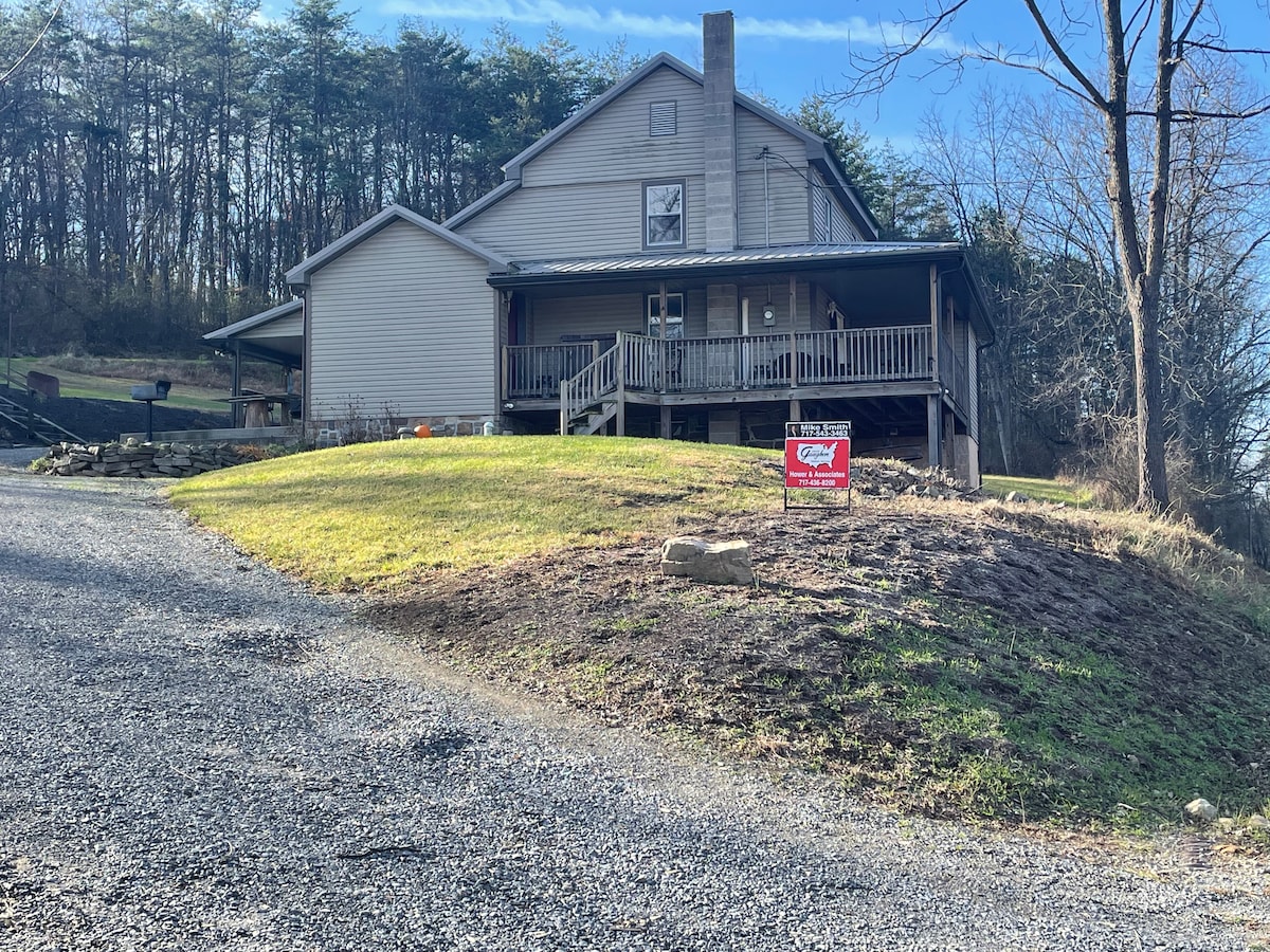 Har du lyst til at hænge ud med udvidet familie eller venner, du ikke har set i et stykke tid? Dette er stedet at gøre det midt i Pennsylvania i en hul omgivet af træer og natur og lyden af en bølgende bæk i det fjerne, der løber gennem den 8,5 hektar store ejendom. Vores mål er, at du bliver forynget fuldt ud! Der er plads til at hænge ud og plads til privatliv med dit eget soveværelse/badeværelse! Boblebad/basketball/pickleball