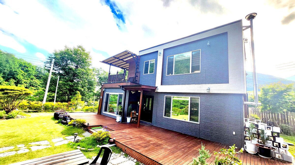 Det er beliggende i byen Cheongsong, så det har god adgang til forskellige turistattraktioner og er tæt på bekvemmeligheder som nærbutikker. Du kan bruge hele 2. sal, og det er en ren og behagelig bolig, der er blevet nyrenoveret. Du kan nyde en grill i den smukke have, der er fuld af forskellige blomster, som ejeren har plantet. Der er en promenade langs floden i nærheden. [Stue] Stand klimaanlæg TV Sofa til 2-3 personer Spisebord til 4 personer [Værelse 1] Queensize seng [Værelse 2] Vægmonteret aircondition 3 sæt sengetøj [Køkken] Mikrobølgeovn til madlavning Kaffekande Mikrobølgeovn El-ricekoger Køleskab Kaffemaskine Stegepande, gryder Hjemmelavet porcelæn af hvidt fyrretræ [Udendørs] Spisebord Grill (Trækul og grillplade skal købes separat. *Kontakt venligst) Juwangsan (12 km) 15 minutter Songso House (4 km) 5 minutter Cheongsong Solgi Oncheon (2,5 km) 3 minutter Chongsong æblefestival 3 minutter til fods Yaksutang (3 km) 5 minutter Ereumgol (27 km) 40 minutter Yeongdeok Ganggu Port (46 km) 40 minutter