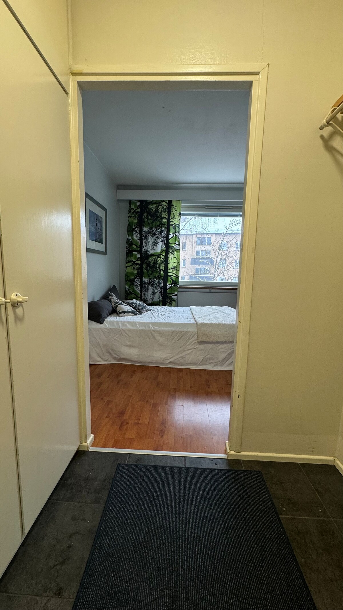 Hele lejligheden er til rådighed. Stue og køkken i samme rum, lille soveværelse/sovealko og badeværelse med sauna. Roligt område, altanen har udsigt over skoven. Gode muligheder for udendørsaktiviteter, direkte fra hoveddøren kan du nå Jyväskylä strandpromenade og badestrand. Nem adgang til centrum, paviljon, messecenter og universitet. Den nærmeste købmand ligger omkring 500 meter væk.
