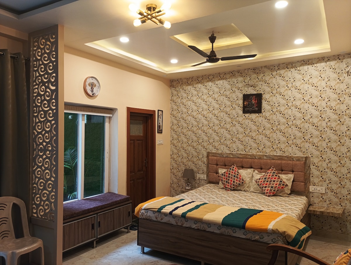 Tag hele familien med til dette fantastiske sted med masser af plads til sjov. Dit elegante fristed venter på dig i Varanasis perle. Denne helt nye, moderne lejlighed tilbyder en perfekt blanding af komfort og stil. Slap af i et airconditioneret rum med to værelser, en luksuriøs kingsize-dobbeltseng, smart-tv og alle de faciliteter, der kræves for et fredfyldt ophold. Vi kan også hjælpe med at arrangere en kok mod et tillægsgebyr, hvis nogen har brug for hjemmelavede måltider.
