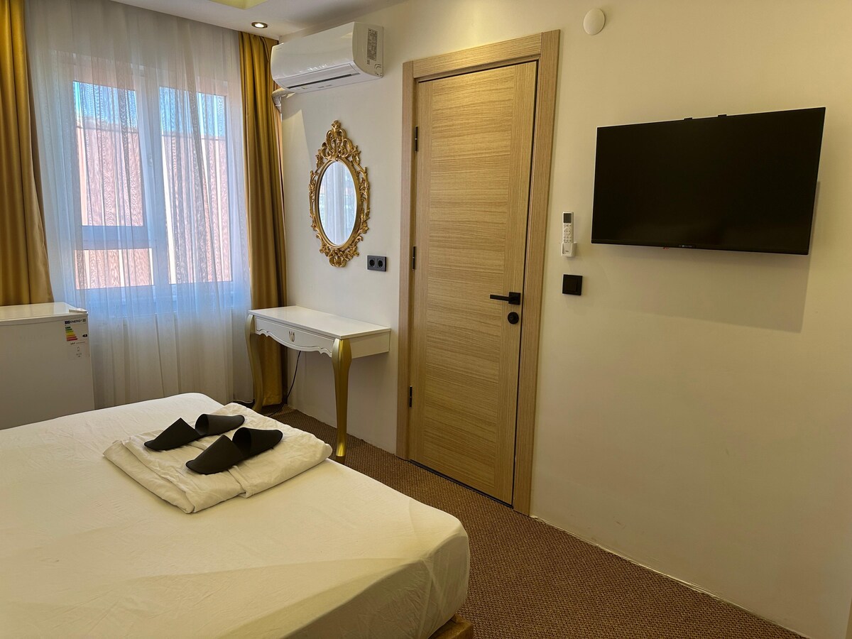 Vi ser frem til at byde dig velkommen til den varme og indbydende atmosfære i Kadikoy. Vi ønsker dig at skabe uforglemmelige minder og hvile din sjæl i denne bolig, som vi har forberedt dig særligt. Vi tilbyder ikke kun et udvalg af indkvartering; vi skaber også et opholdsrum til dig. I vores stilfulde og minimalistiske designede værelse bliver du mødt af en atmosfære prydet med moderne detaljer. Hver detalje er blevet nøje udvalgt for at slappe af og få dig til at finde ro.