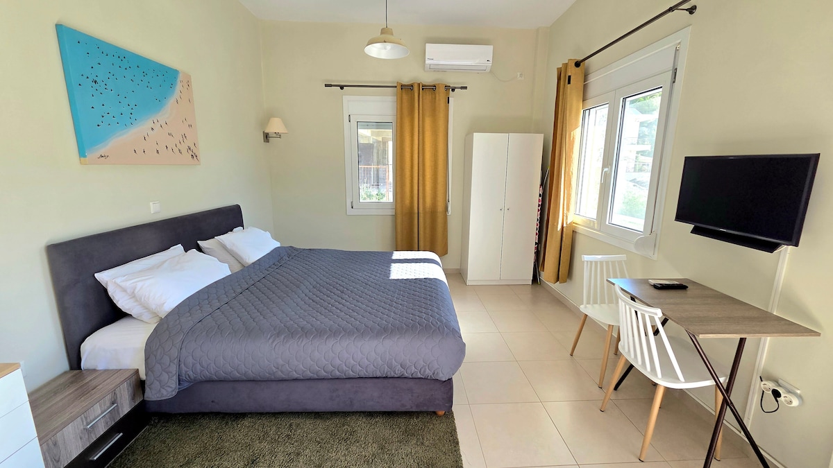 Newly finished, a bright stylish and fully equipped elegant 70m2 fully air- conditioned loft can easily accommodate the needs of 1-5 travelers. It is built in Kalamata in an uncrowded neighborhood on a quiet street with easy parking. Guests have full access to all household appliances, equipment , amenities, plus wifi connection. Both the local beach (1km) and the city centre (2km) make an easy destination. Grocery stores, eateries, small bakeries are all within a comfortable walking distance.