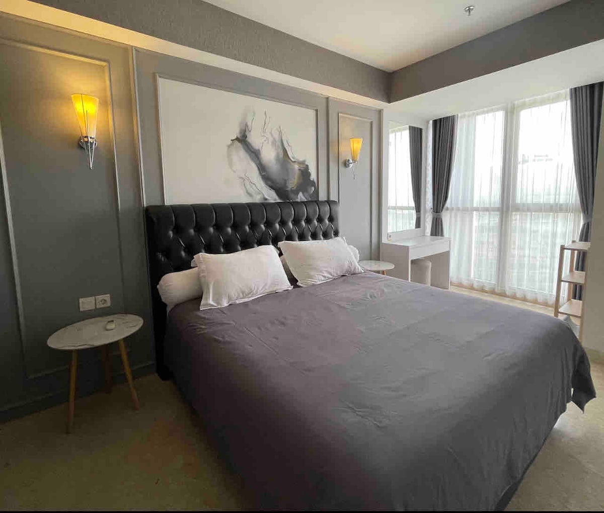 Helt ny studiolejlighed i moderne stil med 50"Samsung Smart Tv Crystal 4K UHD. Beliggende i Tower Fragrant, der er forbundet til Hublife&Taman Anggrek Mall. - Gratis Netflix - Gratis wi-fi - Gratis mineralvand - Dispenser - Elektrisk komfur - Minikøleskab - Mikronesien - Hårtørrer - Kropsvask - Arbejdsbord Vartegn i nærheden: 5 minutter til Central Park Mall, Neo Soho Mall og 10 minutter til Ciputra Mall. 20 minutter til lufthavnen.