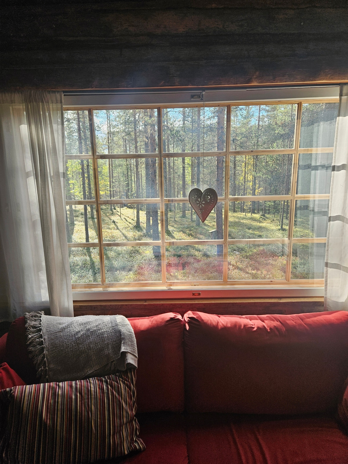 Vi er et traditionelt og moderne indrettet træhus i Levi. Vores hytte ligger 1 km fra Levi centrum og skisportssted, 5 minutter i bil og 20 minutter til fods. Skibussen kører hver halve time fra morgen til aften. Det tager to minutter at gå fra vores hytte til busstationen. Der er en piste kun ti meter fra vores baghave. Bilen kan parkeres foran vores hytte.