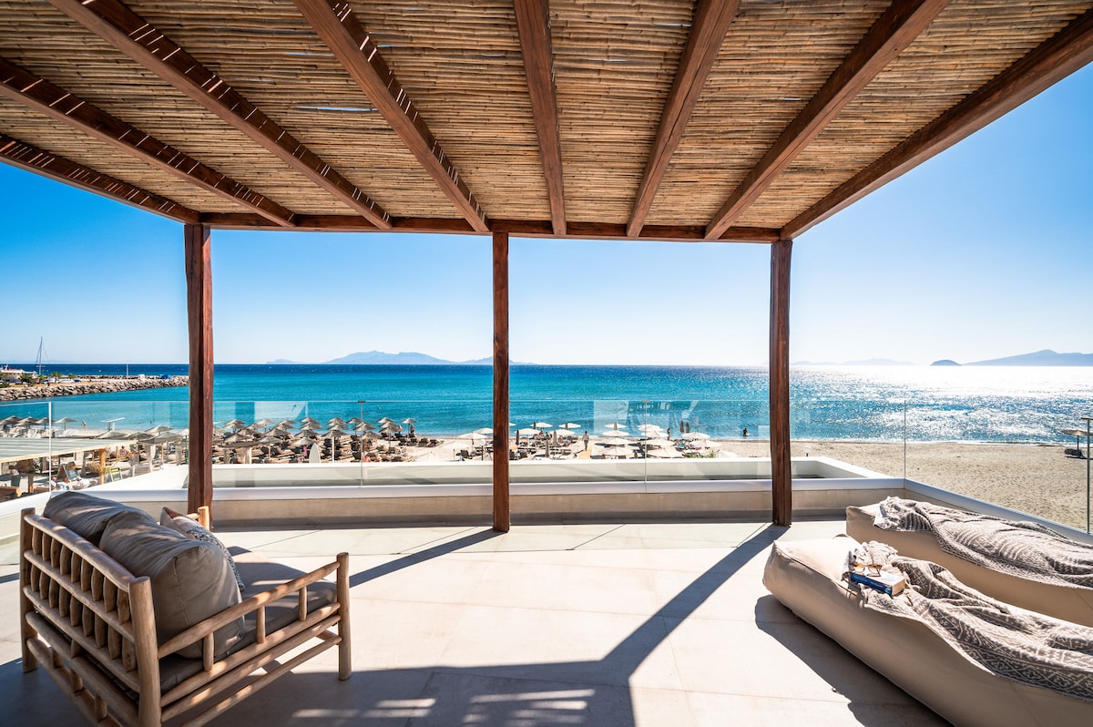 Denne nybyggede suite (28 kvm) ligger direkte på en af de smukkeste sandstrande på Kos-øen, i Kardamena, på øverste etage i en ejendom ved stranden, og den har en stor balkon med panoramaudsigt over havet (60 kvm). Den har køkken med Nespresso-kaffemaskine, badeværelse med bruser og hårtørrer, LCD-TV med satellitkanaler, gratis wi-fi, uafhængigt centralt A/C-system og en kingsize-seng. Få en unik oplevelse i vores suite ved stranden.