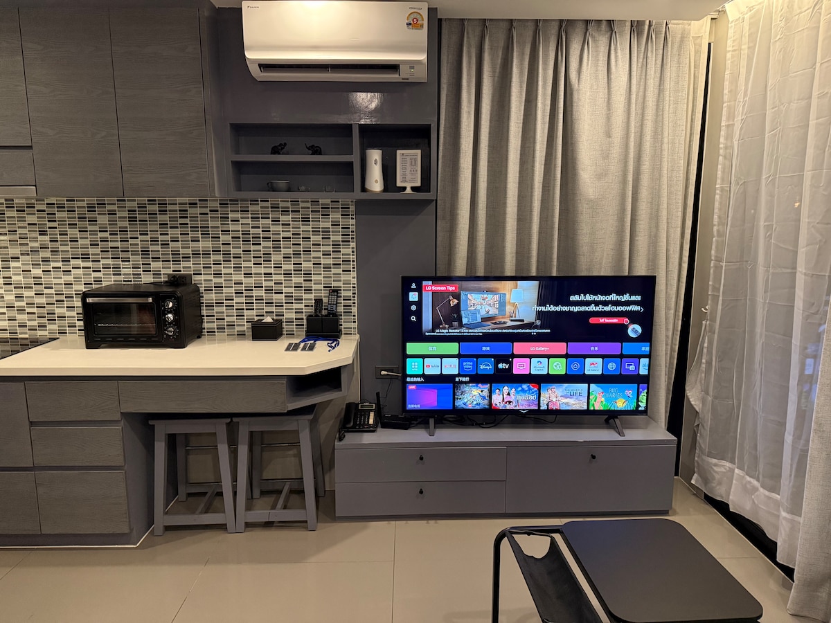⚠️The main swimming pool of the project will be renovated from May 1 to June 30, 2026. ⭐1G Fiber Wi-Fi ⭐55" Smart TV ⭐24/7 Smart Lock (Self-check-in) ⭐Free Water & Electricity 🔊 NOISE WARNING:This unit is close to the swimming pool. Audible noise during daytime and early evening is normal and ongoing. ❌ NOT SUITABLE for guests who require a very quiet environment.