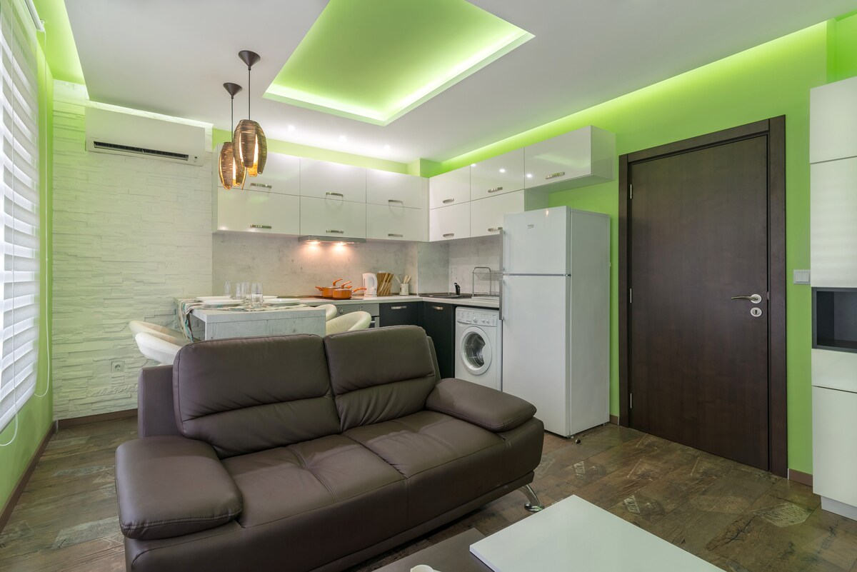 Komfortabel lejlighed til 2, beliggende tæt på centrum og stranden i Varna. I en meget flot bygning på 1. sal med elevator, højhastighedsinternet. INDTJEKNING UDEN vært/fleksible åbningstider Udtjekning UDEN vært/indtil kl. 13.00 Internet: højhastigheds-WiFi eller LAN Parkering: betalt på gaden i nærheden og gratis på 7 min. /gåafstand/