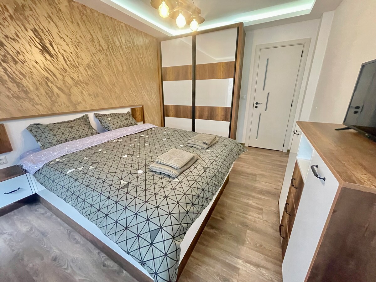 Læn dig tilbage, og slap af i denne rolige, stilfulde bolig. En smuk rummelig helt ny lejlighed i et nybygget topmoderne område (2024). Ejendommen har en dedikeret parkeringsplads i den sikrede parkering med kontrolleret adgang, som ligger på de første tre etager i bygningen. Ejendommen tilbyder sine gæster komfort, fremragende beliggenhed og en fantastisk udsigt over Sortehavet.