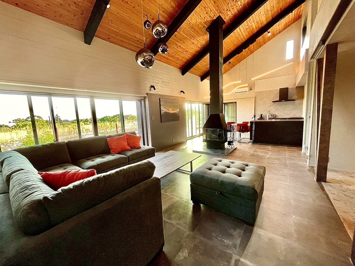 Denne helt nye feriebolig, der rejser sig over havet, har et stilfuldt interiør på en fredelig, ren strand med fantastisk udsigt fra balkonen. Britiske og italienske møbler afspejler tidløs elegance, og i køkkenet kan du tilberede morgenmad, mens du ser på bølgerne. Japansk Toto bidettoilet og Toto Shower hjælper med afslapning. Dobbeltsengen har en moderne luksuriøs urethanmadras ved siden af sjove Yogibo Brand-sæder, hvor du kan slappe af. Som på en privat strand kan du nyde solopgangsture ved Stillehavet.