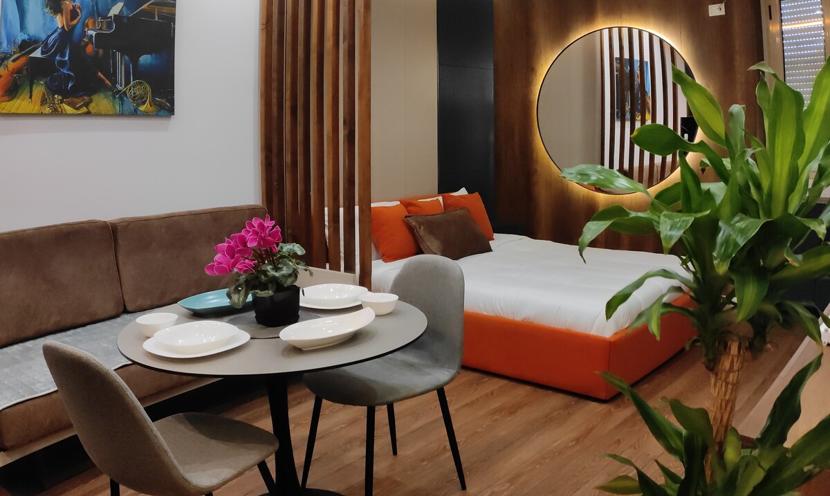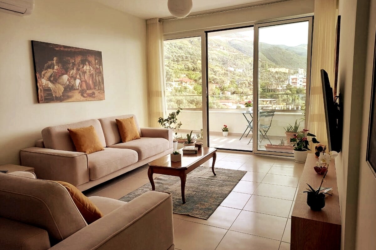 🏡 Hilltop Studio with beautiful Sea Views** Escape to our charming studio near "Uji i Ftohte" in Lungomare. Enjoy a fully equipped kitchen, modern bathroom, cozy sleeping area, and a spacious balcony with sea views. 📍 Perfect Location Beaches, cafes, markets, and restaurants are 5-15 mins away. The bus stop (4 mins) connects you to Vlora’s city center for 40 cents. Hassle-free self-check-in/out. ✨ Your perfect getaway awaits!
