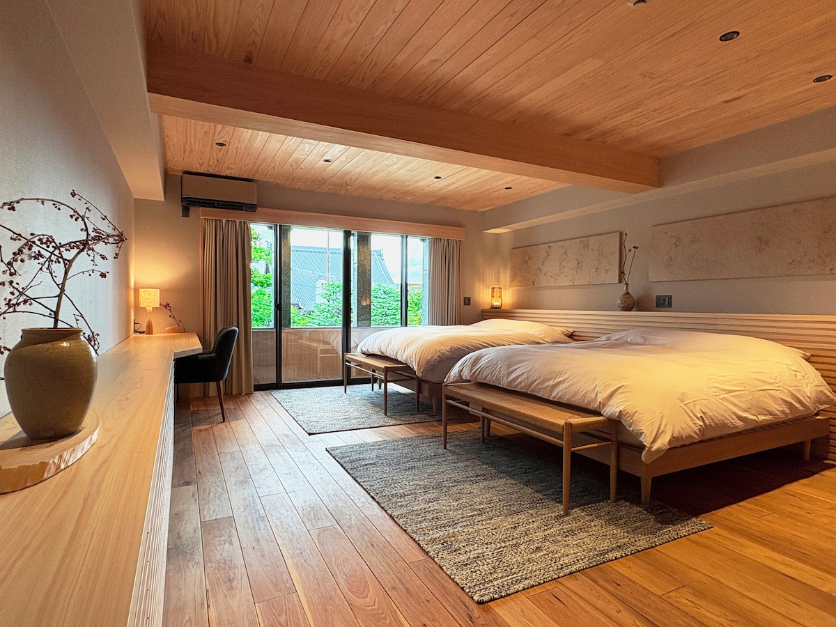 Dette eksklusive loft er hele 4. sal i Kitano Soho-bygningen med privat elevatoradgang og udsigt over nærliggende templer og bjerge. Der er ikke blevet sparet på detaljer for at sikre et unikt og behageligt ophold. Det moderne interiør er nydesignet ved hjælp af lokalt produceret træ og materialer. Kom og udforsk den mere stille side af Kyoto i Nishijin-distriktet, hvor man nemt kan fare vild, når man går gennem maleriske nabolag og udforsker lokale spisesteder, templer og parker.