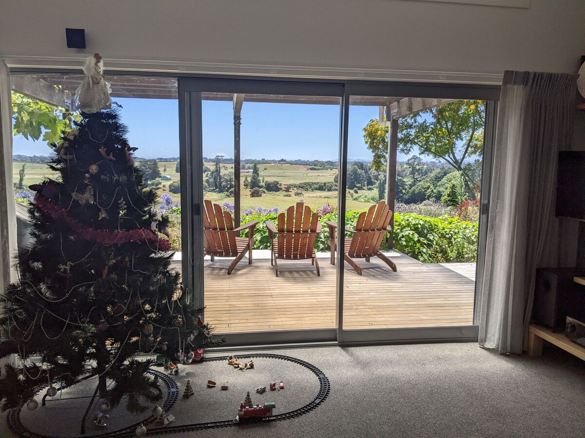 Nyd udsigten over dalen og fuglelivet på denne økologiske ejendom. Det stilfulde værelse er privat og solrigt, perfekt til en afslappende weekend. Det ligger ved siden af et lille reservat og Waitetuna-floden. Du kan vælge at udforske skovvandringerne 5 minutters kørsel væk i Waitetuna Valley, sidde ved siden af floden på reservatet eller tage en lille tur til Raglan og dens surfstrande. Studiet ligger kun 15 minutter fra Raglan og 30 minutter fra det centrale Hamilton og på busruten.