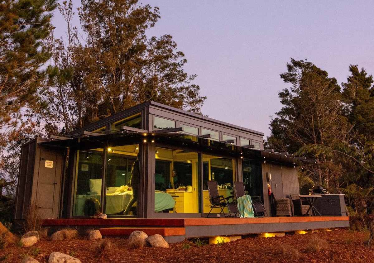 Fyld din sjæl med fred og ro fra fugle, buskads og en fantastisk udsigt over kystlinjen, der aldrig ender. Vores lille kapsel i paradis ligger i bakkerne og er et hyggeligt sted væk fra det hele – men vi er kun få minutter fra stranden, pubben, butikkerne og caféerne. Denne romantiske bolig er udstyret med alt, hvad du behøver, herunder en overdækket terrasse, hvor du kan nyde den smukke solopgang og stjernehimlen. **Gode rabatter, der tilbydes for bookinger på 7 nætter eller mere** **Datoerne kan ændres på grund af dårligt vejr**