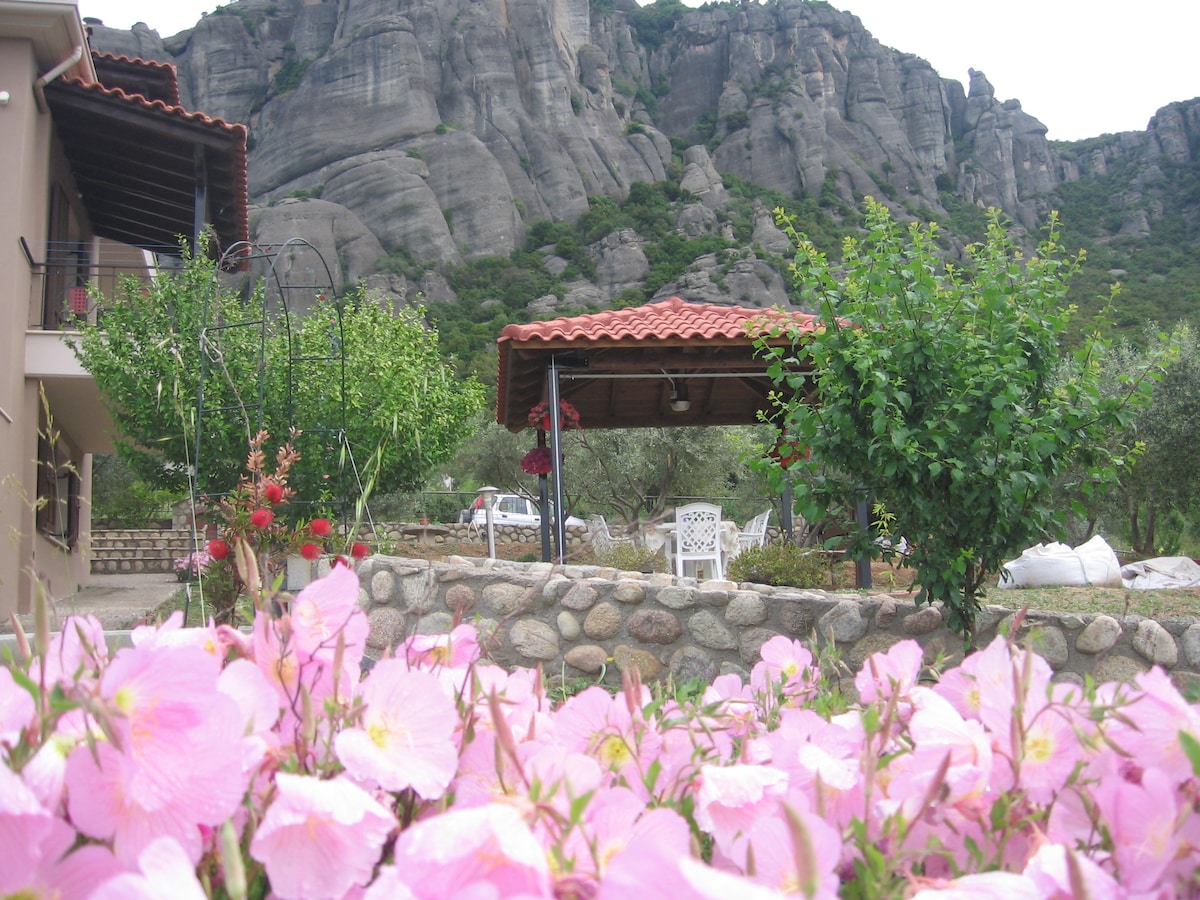 En dejlig sommerfølelse for denne rummelige have lejlighed. 1 soveværelse med dobbeltseng, åben stue, stort køkken . Tæt på Meteora-bjergene med panoramaudsigt til byen og klipperne. Beliggende på et fredeligt og roligt sted. Masser af vinduer og naturligt sollys ~ nyd udsigten, eller tag en kort gåtur til den legendariske Holly Trinity Vandresti. Vi er 15 minutters gang til centrum af byen og 15 minutters gang til Virgin Mary Ancient tempel.