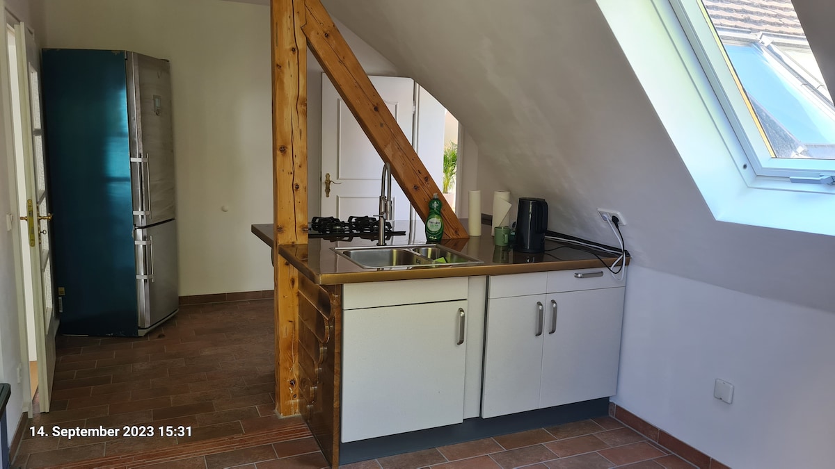 "Især nu skal du bare komme ud af byen og ud på landet." Lejligheden ligger på øverste etage i et totalrenoveret hus fra 1745. Moderne møbler, lyse værelser, en åben indretning og 92 kvadratmeter plads. Der er plads til 1-6 personer. Du kan slappe af komfortabelt på en lille balkon. Adgang er via en separat trappe. Vi ser frem til at byde gæster, der ønsker at udforske vores smukke Kraichgau-region eller bruge den som mellemlanding på deres rejse.