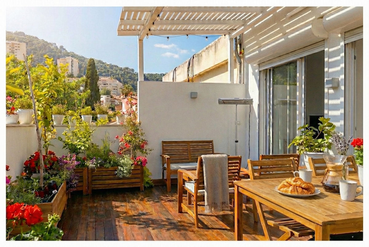 ⭐ Central, terrasse, havudsigt, parkering og fitness