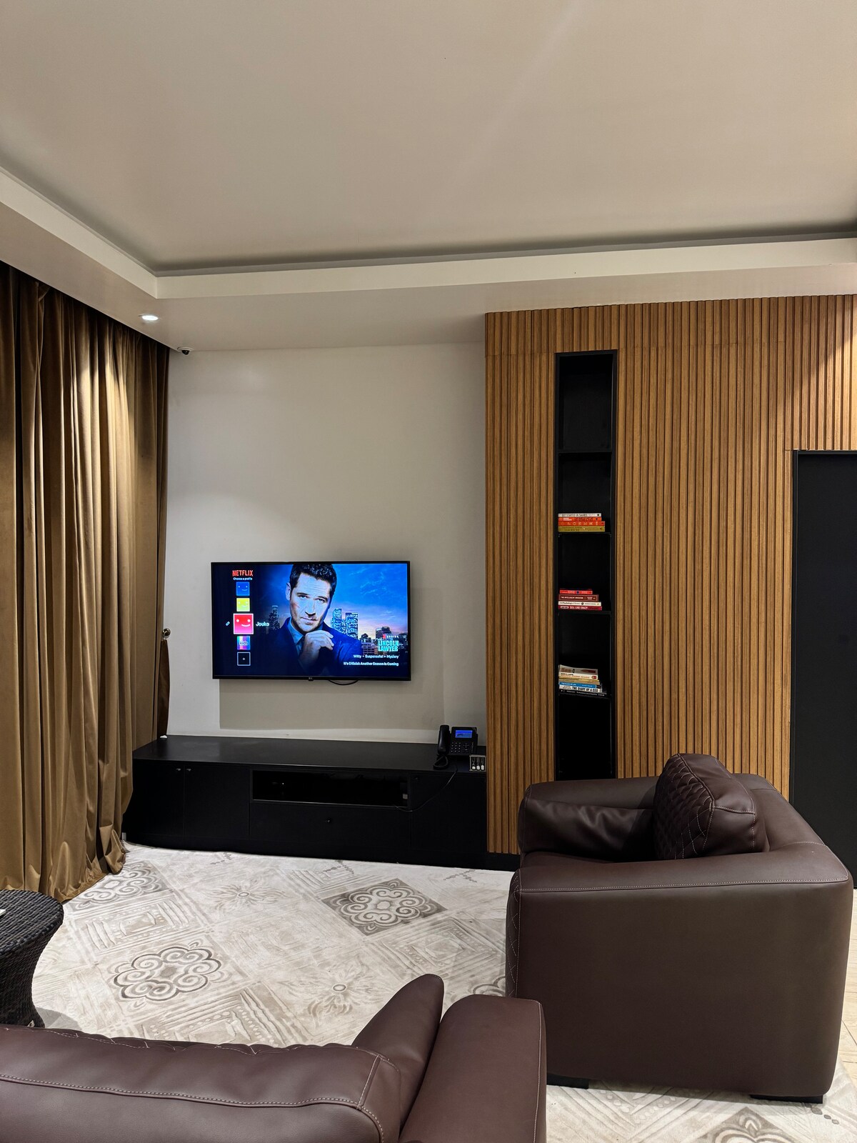 Oplev ro på denne rolige, private luksusterrasse beliggende i et sikkert område i Aso, Guzape. Denne stilfulde bolig med tre soveværelser tilbyder komfort, plads og en afslappende stemning, der er perfekt til korte eller lange ophold. Nyd en rummelig stue, moderne køkken, hurtig wi-fi, balkon og nem adgang til de bedste restauranter og byens steder. Ideel til forretningsrejsende, familier eller rolige ferier. Fred, privatliv og førsteklasses komfort venter.