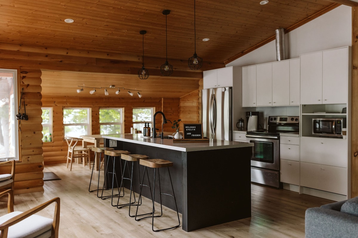 Helt renoveret 4-værelses/4-sæsoners hytte ved Kashagawigamog-søen beliggende mellem Haliburton og Minden. Åbent køkken med ø. Spiseplads i Haliburton-værelset med udsigt til søen. Ny terrasse, udendørs bålplads og spabad. 20 hektar privat skov og stier. Privat kaj, SUP, kano, 3 kajakker, 20 fods flydemåtte Sommerudlejning: kun fra fredag til fredag Der er en stille hyttevej mellem hytten og vores private havn. Bærbare klimaanlæg. Ingen polterabend/fester. Kun voksne gæster.