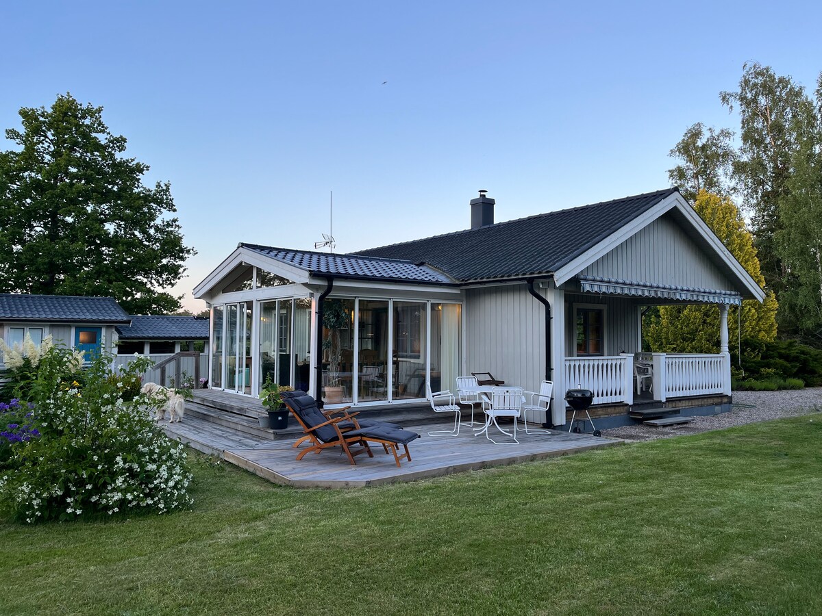 Hytte tæt på søen, en time fra Stockholm. Her har du masser af plads til at hænge ud med venner og familie. Den hyggelige Sjöstugan er nyrenoveret, med åbent planløsning mellem køkken og den luftige stue. Her har du den første parket til udsigten over søen Orrhammaren. Slap af i en smuk, landlig beliggenhed. Svømning, kanosejlads, grill, vandreture og opdag Sörmland – med skov, søer, slotte, statsministerens sommerresidens og andre seværdigheder. Har du noget at fejre? Kontakt os. Vi hjælper gerne.