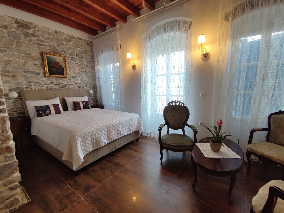 Flere funktioner kan få denne bolig til at skille sig ud: **Havudsigt**: Værelsets havudsigt er et stort højdepunkt, der tilbyder gæsterne naturskønne og fredfyldte omgivelser. **Blanding af traditionelle og moderne elementer**: Kombinationen af traditionelle arkitektoniske elementer, såsom synlige stenvægge og træbjælker, med moderne faciliteter og indretning skaber en unik og charmerende atmosfære. **Omgivende belysning: Den varme og omgivende belysning forbedrer den hyggelige atmosfære, så boligen føles mere indbydende.